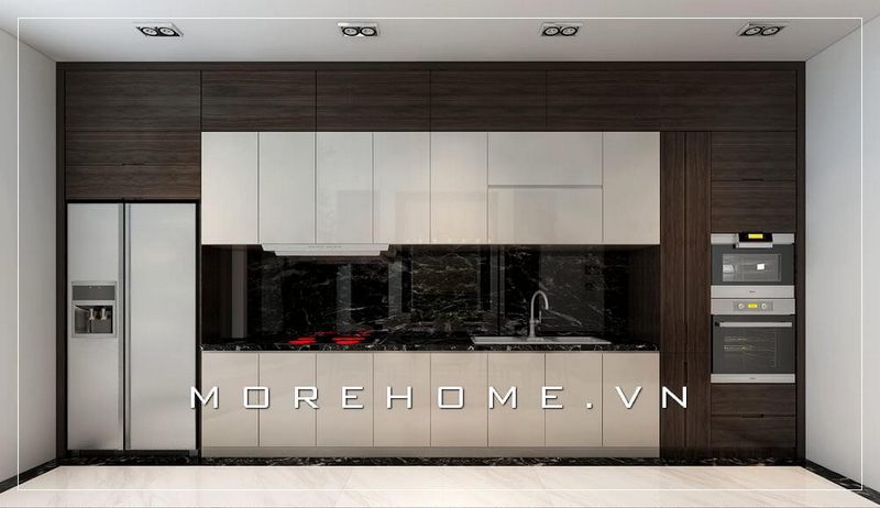 Nội thất gỗ công nghiệp hiện đại được thiết kế để phù hợp với phòng bếp chung cư, mang lại sự tiện nghi cho người sử dụng.